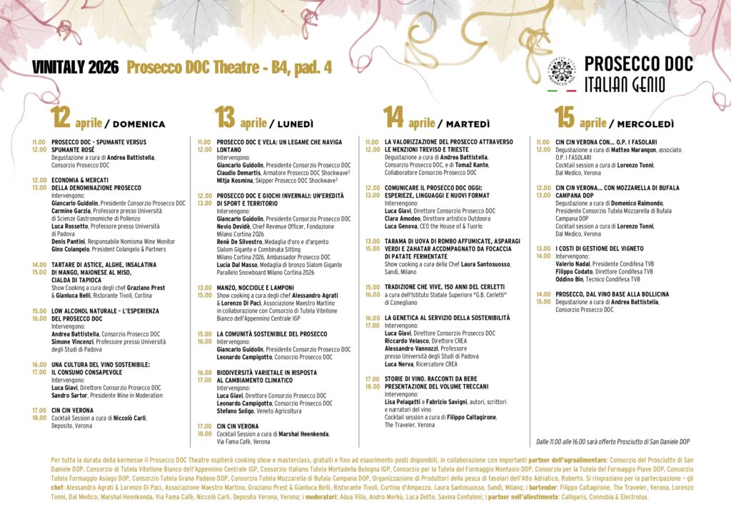 Per tutta la durata della manifestazione – al Pad 4 / Stand B4 – il Prosecco DOC Theatre ospiterà cooking show e masterclass, gratuiti e fino ad esaurimento posti, in collaborazione con i partner dell’agroalimentare d’eccellenza: