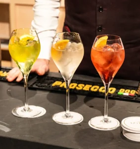 Allo Sparkling Hub il Prosecco DOC è protagonista in molte forme. Le degustazioni guidate permettono di esplorare le diverse espressioni della denominazione, mentre i cocktail creati dal cocktail bar The Spirit portano le bollicine in una dimensione più creativa e informale. La speciale bottiglia dedicata alle Olimpiadi diventa il simbolo tangibile di questo incontro tra sport e lifestyle, un oggetto che racconta l’occasione e il momento storico.